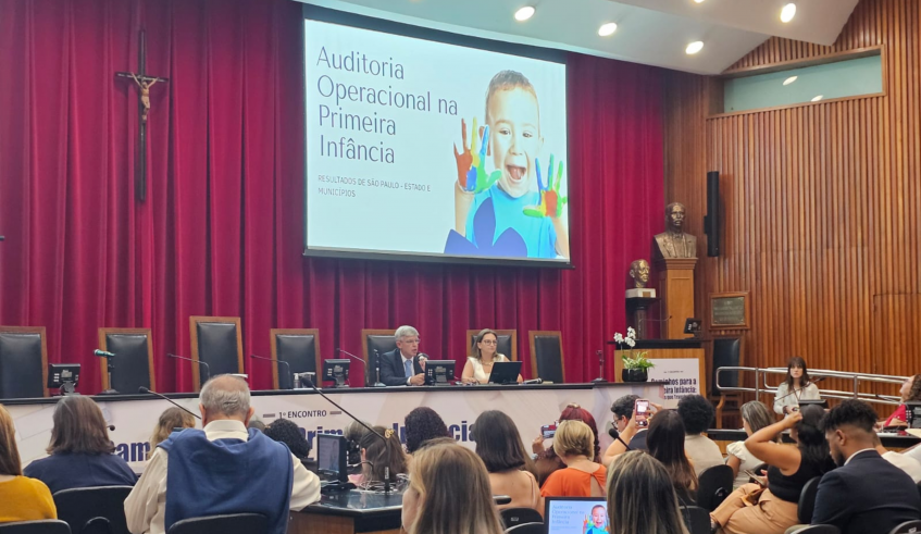 Também foram apresentados os resultados da Auditoria Operacional em Primeira Infância, conduzida pelo TCE-SP, com exposições de Roberta Veras e do diretor técnico da Unidade Regional de Mogi-Guaçu, Vanderlei Marçola.