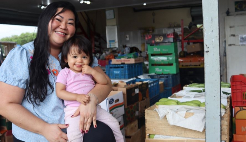A história de Letícia Wada com o Mercado do Produtor também teve início ainda na infância, acompanhando a mãe. Atualmente, ela comanda o próprio box e vive o desafio de conciliar o trabalho com a maternidade, cuidando de uma filha de 1 ano. "Cresci aqui dentro. Hoje eu entendo tudo que minha mãe viveu. Conciliar não é fácil, mas a gente dá um jeito. Ser mãe e estar aqui é uma dupla jornada que vale a pena”, relata.