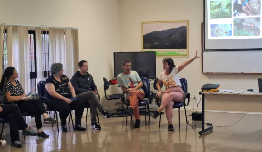 O encontro contou com a participação do Coletivo Taboa, organização especializada na criação de espaços de brincar junto à natureza, por meio da iniciativa Urban95. Os formadores Julia Berro e Guilherme Blauch apresentaram experiências práticas e orientações técnicas para o desenvolvimento dos projetos nas unidades escolares.