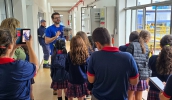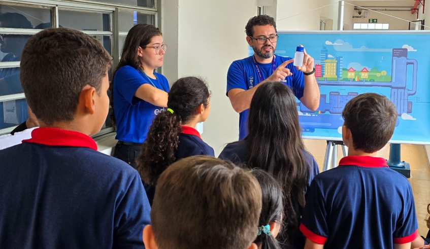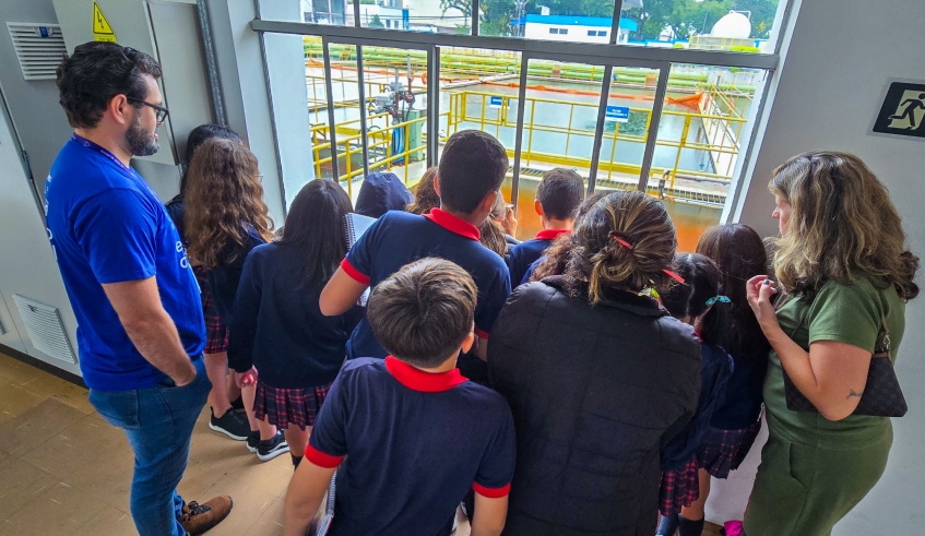 Com olhar apurado, alguns tomando nota das explicações do técnico, um grupo de alunos do 5º ano do Colégio Saint Thomas', de Mogi das Cruzes, conheceu parte da operação da Estação de Tratamento de Água (ETA) Centro, na primeira visita monitorada de 2026 do programa Semae de Portas Abertas, realizada na manhã desta quinta-feira (12/03). Acompanhados das professoras, os estudantes participaram com várias perguntas, esclarecendo dúvidas e saindo com mais convicção sobre a importância da água para a vida no planeta.